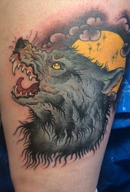 腿部现代的传统月亮狼头纹身图案
