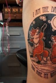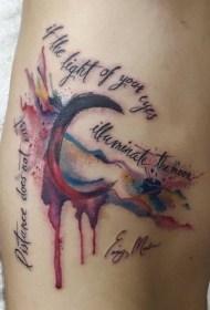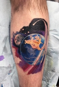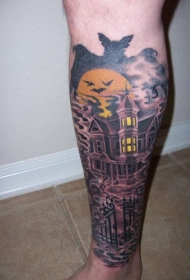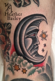 腿部老派风格的彩色月亮与蜘蛛纹身