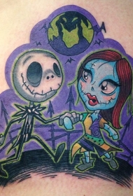 肩部彩色滑稽漫画风格圣诞骷髅夫妇纹身