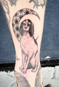 小腿滑稽的狗和月亮纹身图案