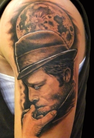 大臂吸烟黑手党与大月亮纹身图案