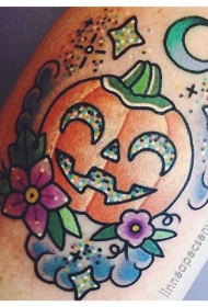 微笑的南瓜和星星月亮纹身图案