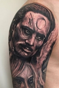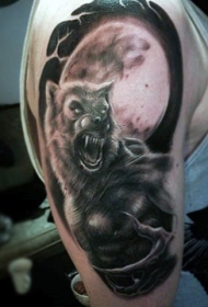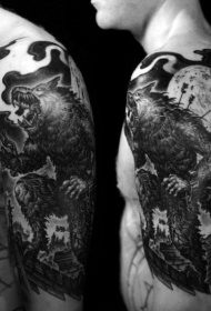 肩部惊艳的插画风格黑白狼人与月亮纹身图案