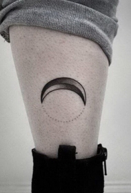 小腿点刺风格黑色月球和太阳羽毛纹身图案