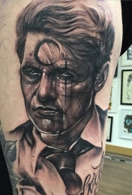 手臂神秘的黑灰风格男子与月亮符号纹身图案
