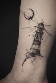 脚踝雕刻风格黑色灯塔和月亮纹身图案