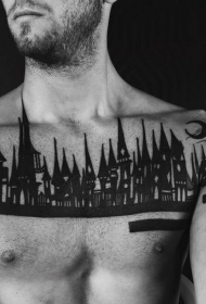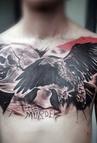 胸部壮观的黑色乌鸦月亮和字母纹身图案