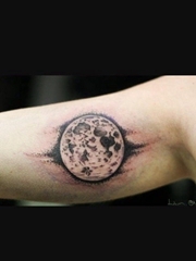 手臂上黑白纹身点刺技巧纹身月亮图片