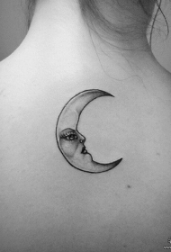 女生肩膀上纹身黑白灰风格点刺纹身月亮建筑物纹身图片