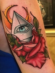 小臂欧美月亮莲花眼睛点刺纹身图案