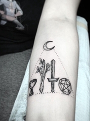 手前臂上的虚线三角形里的弯月的小物件图案纹身