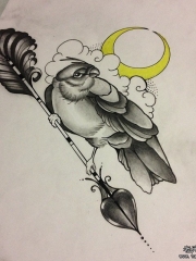 欧美school女郎骷髅月亮几何纹身图案手稿