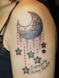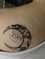 坐在月亮上的可爱史迪仔脚背纹身图片