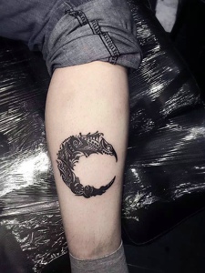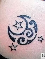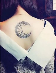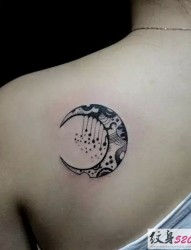 可爱的黑白3D狼额头有一个月亮的创意纹身图案