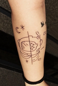 女孩和月亮纹身图案 女生大腿上女孩和月亮纹身图片