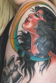 女生和月亮纹身图案 女生大臂上女生和月亮纹身图片