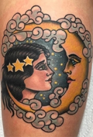 纹身云彩月亮 男生大腿上云彩和月亮纹身图片