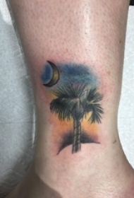 脚踝骨纹身 男生脚踝上月亮和大树纹身图片
