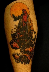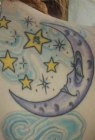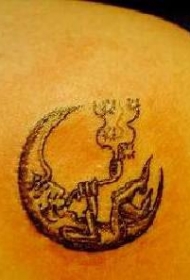 肩部黑灰Wolf tattoo狼与月亮纹身