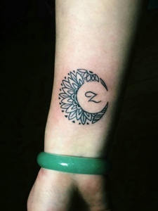 胳膊上长着恶魔耳朵的月牙纹身图案