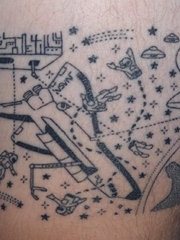黑色素描纹身宇宙飞船和宇航员人物纹身图片