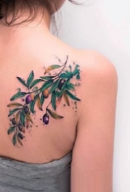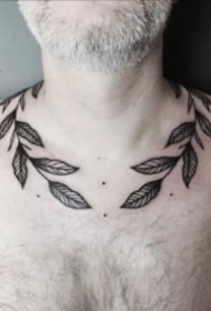 美女锁骨唯美的黑灰相间的橄榄枝纹身图案