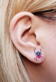 女生耳朵上彩绘渐变小动物蜘蛛纹身图片