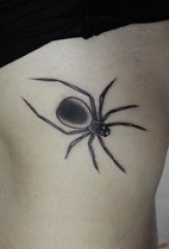 女生侧腰上黑灰点刺简单线条小动物蜘蛛纹身图片