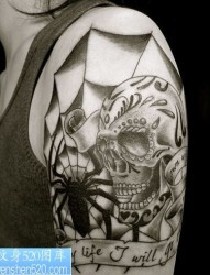 大臂骷髅蜘蛛网纹身图案图案