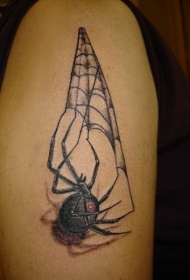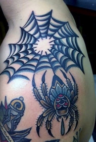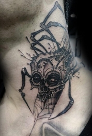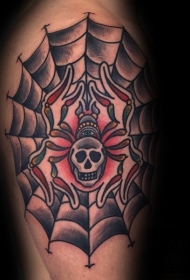 肩部老派风格的神秘骷髅蜘蛛纹身图案