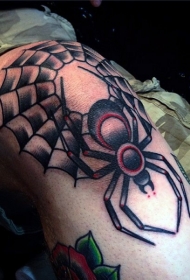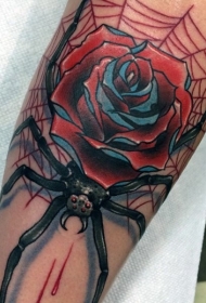 老学校风格彩色血腥蜘蛛与玫瑰纹身
