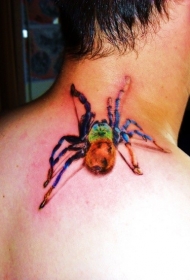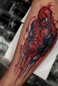 腿部全新风格的彩色蜘蛛侠纹身图案