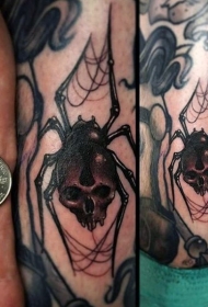 腿部新风格的彩色人类头骨与蜘蛛纹身