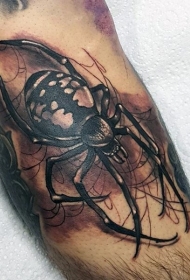 腿部现代风格的彩色骷髅与蜘蛛纹身图案