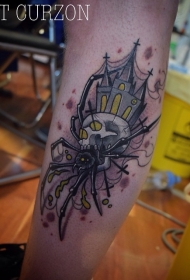 手臂彩色猫头鹰与蜘蛛纹身图案