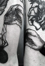 经典雕刻风格黑色的手与蜘蛛网和蜘蛛纹身图案