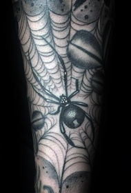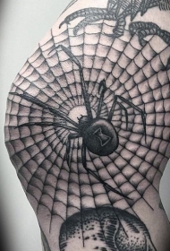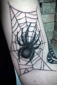 巨大的黑色蜘蛛网和大蜘蛛手臂纹身图案