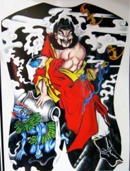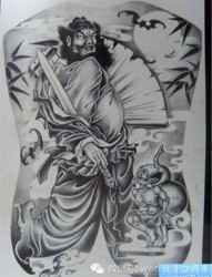 一幅适合做满背的钟馗纹身手稿图案由纹身520图库分享