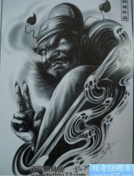 半甲纹身手稿:半甲钟馗老虎纹身手稿