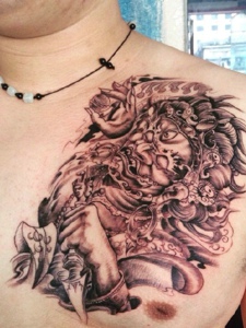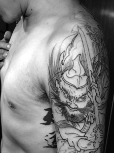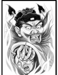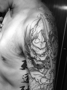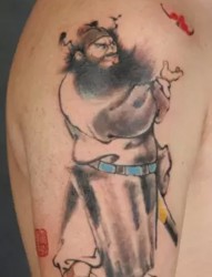 浩然正气的抽象线条传统人物钟馗纹身图案