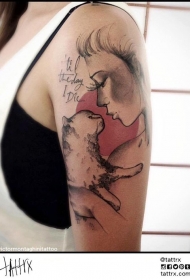 写实风格令人毛骨悚然的猫和女人肖像纹身图案