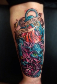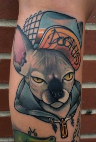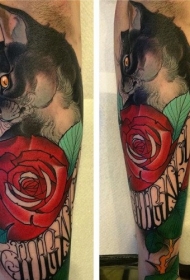 小腿new school搞笑猫腿与玫瑰和字母纹身图案