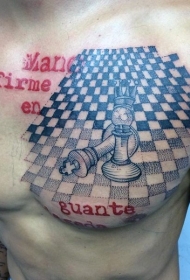 胸部彩色凯尔特符号与字母和动物纹身图案