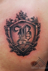 胸部超现实主义风格的彩色心脏字母几何纹身图案