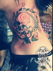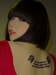 女生腰部漂亮的彩绘小燕子和字母纹身
