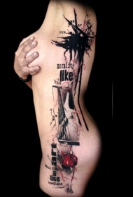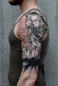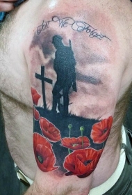 纪念像彩色坟墓石头上字母和鲜花纹身