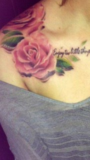 性感美女手臂上的骷髅玫瑰英文字纹身