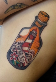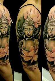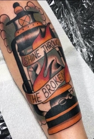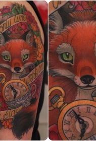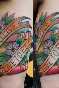 肩部奇妙的彩色孤独树和鸟儿纹身图片