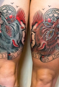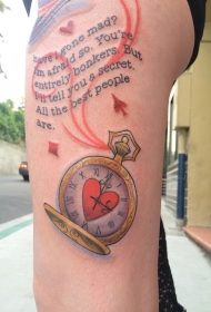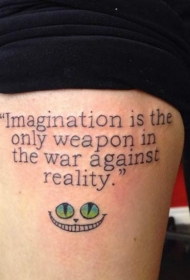 腿部彩色英文字母与柴郡猫的微笑纹身