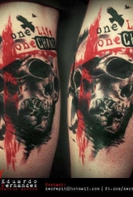 腿部彩色涂鸦风格滑板刻字纹身